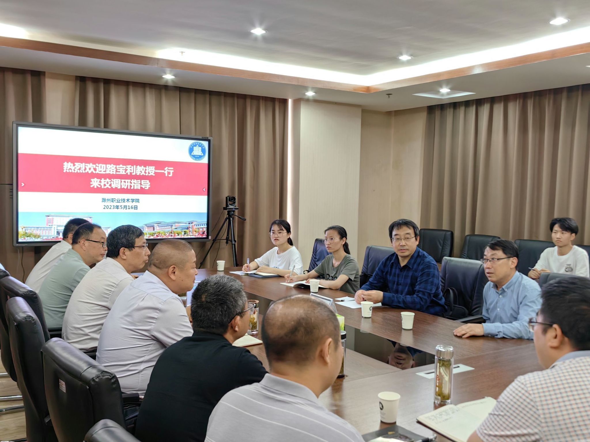 5月16日下午,安徽师范大学教育科学学院博士生导师路宝利教授率课题组成员来beat365调研职业教育工作。滁州市教体局职业与成人教育科蒋新华科长陪同调研,安徽滁州职教集团秘书处、科技处(职教研究所)相关工作人员、部分教学院部负责人和教师代表参加调研座谈会。科技处处长(所长)肖陆飞主持座谈。