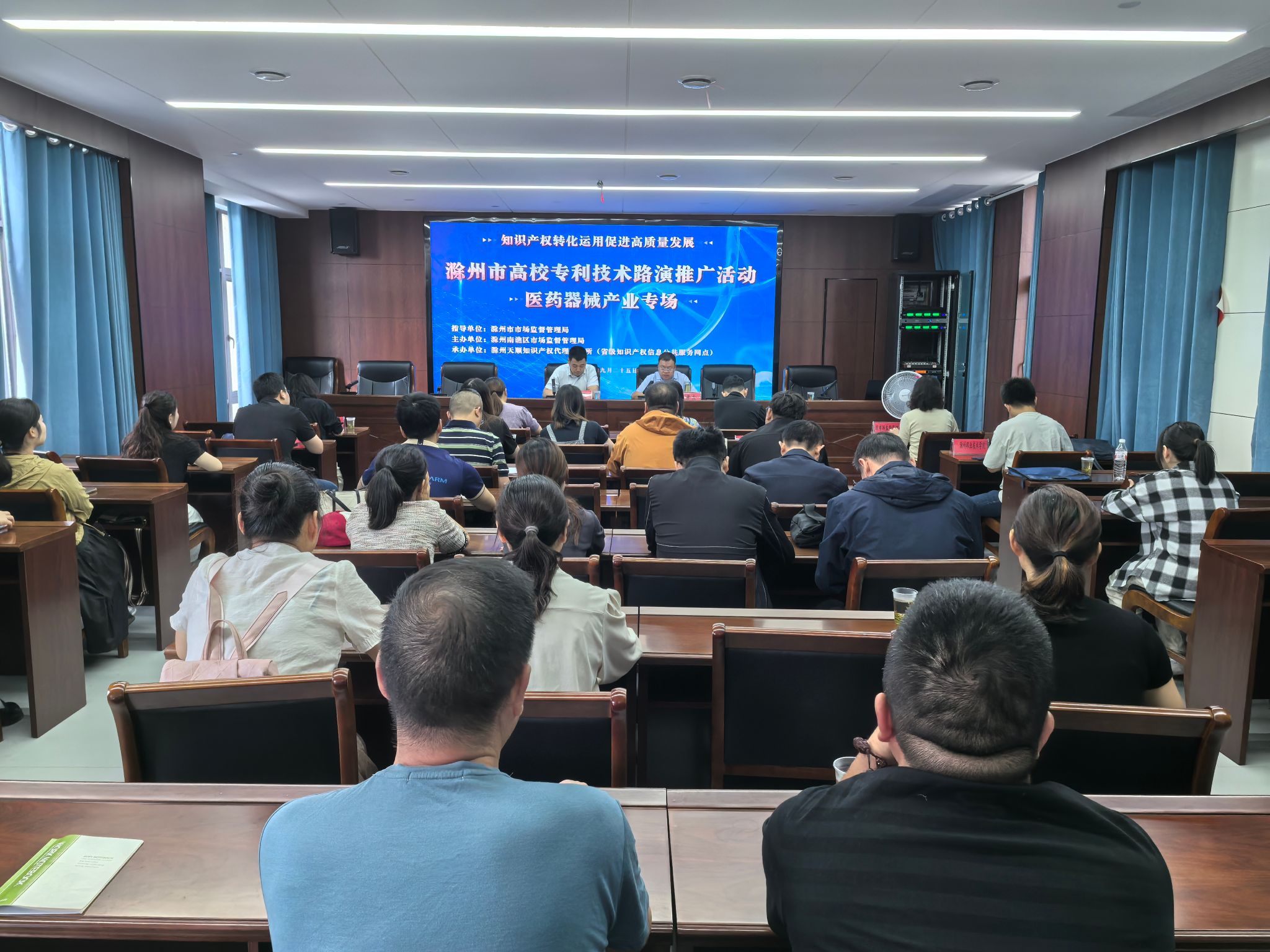9月25日上午,滁州市高校专利技术路演推广活动——医药器械产业专场在南谯区市场监督管理局成功举办。本次活动由滁州市市场监督管理局指导,南谯区市场监督管理局主办,省级知识产权信息公共服务网点滁州天顺知识产权代理事务所承办。南谯区相关区直部门、高校、科研院所、医疗器械企业代表40余人参加了此次活动。