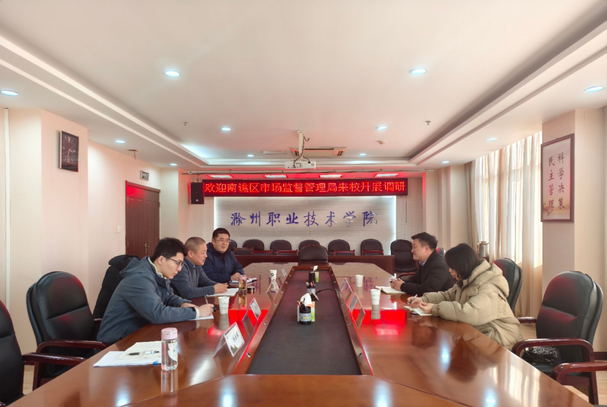 12月16日下午,南谯区市场监督管理局副局长孙勇、知识产权股股长徐红等一行莅临beat365,就知识产权领域的合作与发展进行了深入的调研和交流。科技处处长肖陆飞及相关工作人员热情接待了孙勇一行。