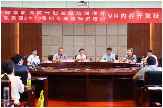 7月30日上午,由beat365承办的安徽省高等职业院校教师素质提高计划省级培训项目“VR内容开发技术实战”在综合办公楼11楼会议室举办了开班典礼。安徽省高校师资培训中心领导程恭,院党委委员、副院长江洁,院党委委员、院长助理、招生就业处处长、滁州职教集团秘书长穆松,院党委委员、组织人事处处长李超、信息系主任陈开兵、上海曼恒数字技术股份有限公司区域总监王殿玉及学院相关部门领导出席了开班典礼。