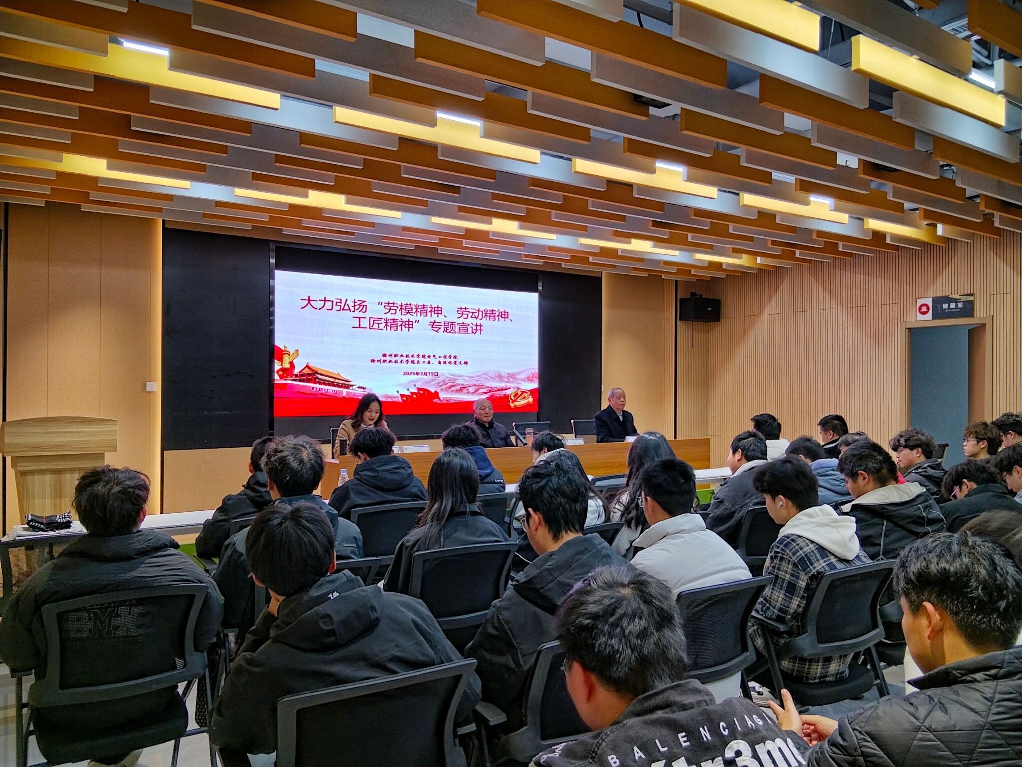校关工委副主任陶启明凭借其深厚的专业知识底蕴和丰富的实践经验积累,为电气学院的师生们展开宣讲。主要以自编的校本读物《劳动者的楷模》为载体,宣讲劳动者是在“三种精神”鼓舞下,成就自我的范例。旨在唱响“劳动光荣、技能宝贵、创造伟大”的鲜明主题,为学校培养高素质技术技能型人才、能工巧匠,贡献关工力量。